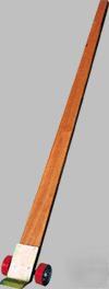 Provide dock workers, riggers, and freight handlers with the leveage to get underneath heavy objects for transporting with fork truck, hand truck, pallet truck, or machinery movers. Unit is equiped with two 5" x 2" poly-on-steel wheels. 6" wide by 8" long by 1/2" thick steel nose plate with beveled edge is bolted to the wood handle.